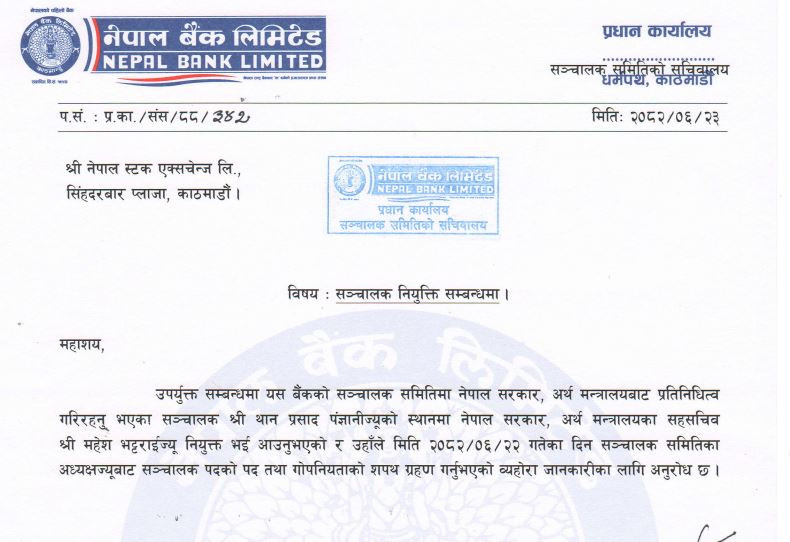 काठमाडौं । नेपाल बैंक लिमिटेडको सञ्चालक समितिमा महेश भट्टराई नियुक्त भएका छन्।