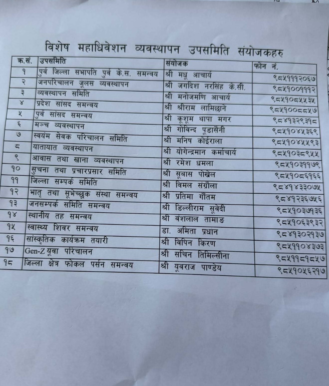यी उपसमितिले विशेष महाधिवेशन सफल पार्न परिचालनको काम गर्नेछन् ।