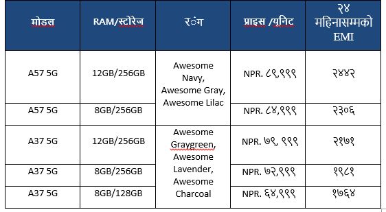 Samsung ले नेपालमा सार्वजनिक गर्यो Galaxy A57 5G र Galaxy A37 5G २४ महिनासम्मको EMI सुविधासहित